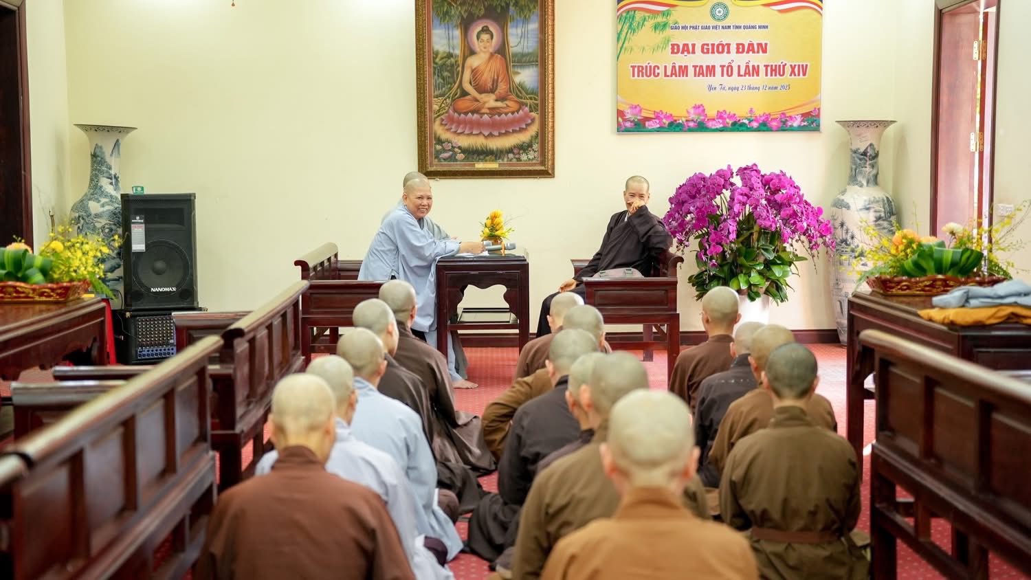TLYT - Chiều ngày 22/12/2025 (03/11/Ất Tỵ), tại chùa Trình Yên Tử - Trụ sở Ban Trị sự Giáo hội Phật giáo Việt Nam (GHPGVN) tỉnh Quảng Ninh đã diễn ra buổi khảo hạch các giới tử cầu thụ giới pháp tại Đại giới đàn Trúc Lâm Tam Tổ lần thứ XIV.