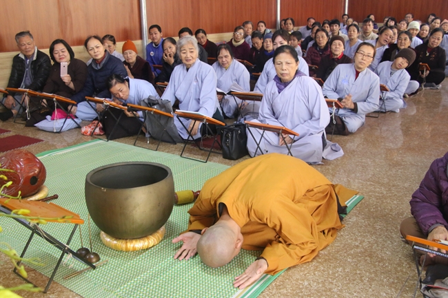 Khi nằm ngủ hay nghỉ ngơi, không nằm nghiêng bên trái, vì trái tim nằm về phía trái của lồng ngực, tim sẽ bị đè nén, máu không lưu thông được, dễ dẫn đến ác mộng, (có thể nằm ngửa với tư thế thân ngay thẳng, hai chân khép lại, tay đặt trên bụng hoặc duỗi thẳng, nên lấy mền che phần bụng dưới lại cho kín đáo). Không nên nằm sấp vì buồng phổi bị ép làm khó thở. Nằm theo thế cát tường tức là nằm nghiêng bên phải, chân tay duỗi thẳng (giống tư thế Đức Phật nhập Niết bàn), đây là cách nằm an lành tốt đẹp, vừa trang nhã vừa có lợi cho sức khỏe. Qua thời gian gần hai tiếng đồng hồ, Đại Đức đã giúp cho Phật tử hiểu nhiều hơn về oai nghi của người Phật tử, nhằm lấy đó làm hành trang trên bước đường học Phật.