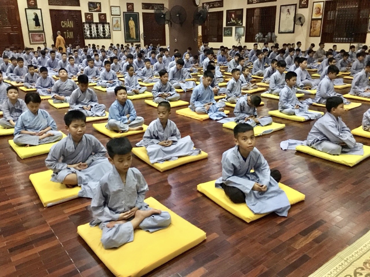 Các em thiếu nhi tập tọa thiền trong một khóa tu mùa hè